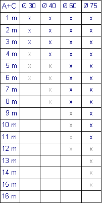 Größentabelle für Rundspiegel, Kontrollspiegel,